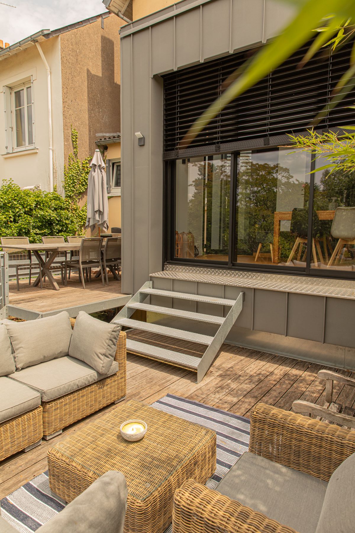 L'extension de la pièce de vie datait de plusieurs années et procurait un inconfort thermique en hiver et en été. Des solutions d'amélioration thermique ont été apportées, dont principalement :